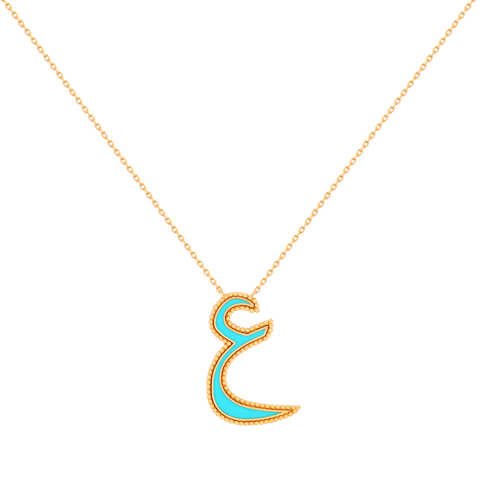 - 18K Gold And Enamel Arabic letter ع Necklace