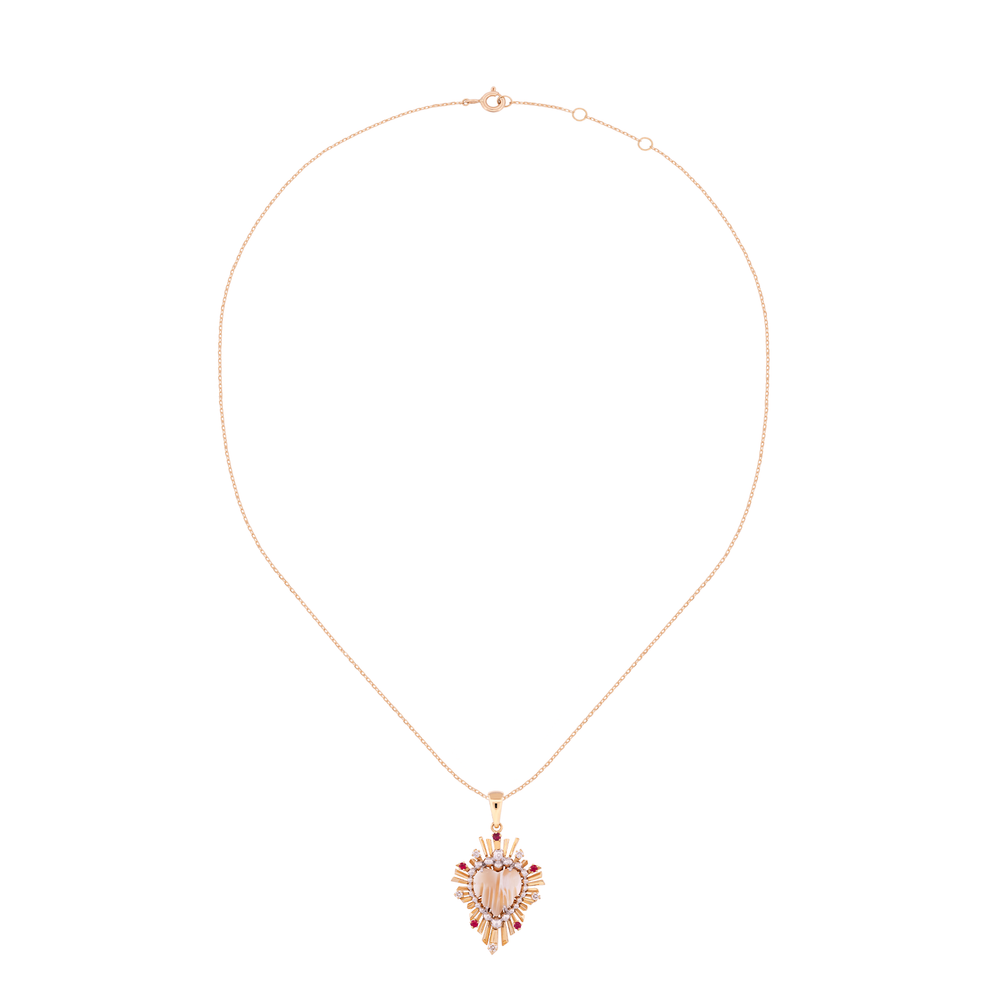 - 18K Gold Heart Pendant with Ruby, Diamond & Mother of Pearl