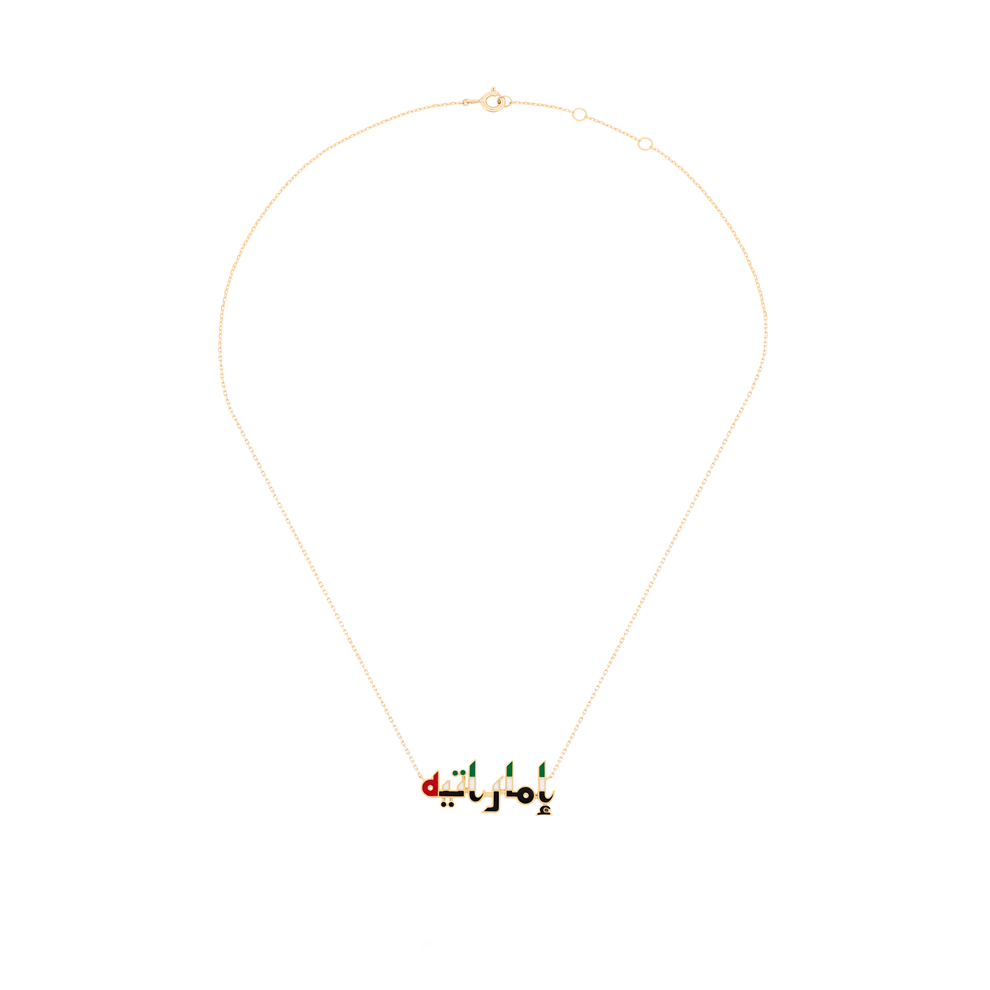 - Emirati Pride 18K Gold Calligraphy Enamel Necklace